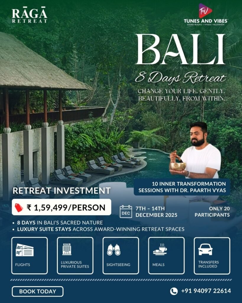 Tunes & Vibes offers a unique blend of holistic therapies including sound healing, raag therapy, mandala therapy, ice plunge, relaxation chair, and red-light therapy for complete well-being. Our approach bridges ancient Indian healing wisdom with modern scientific validation to ensure safe, effective results. Each wellness program is personalized to meet individual needs, delivering lasting impact and care. As a trusted leader in India’s growing wellness industry, Tunes & Vibes stands at the forefront of transformative, science-backed healing experiences.